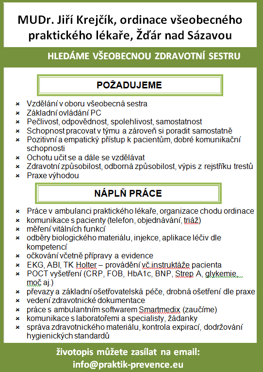 MUDr. Krejčík hledá zdravotní sestru | 09.01.2026